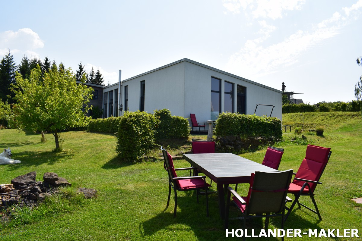 Het verhoogd gelegen perceel biedt een prachtig panoramisch uitzicht over het Eifellandschap, met volledige rust en privacy.