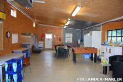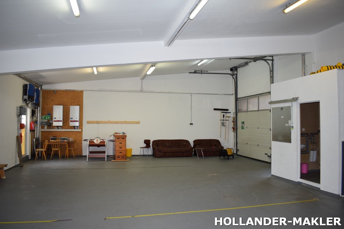 – Geïsoleerde hoofdhal (200 m²) met elektrische deur, stroom, warmtepomp, sanitair