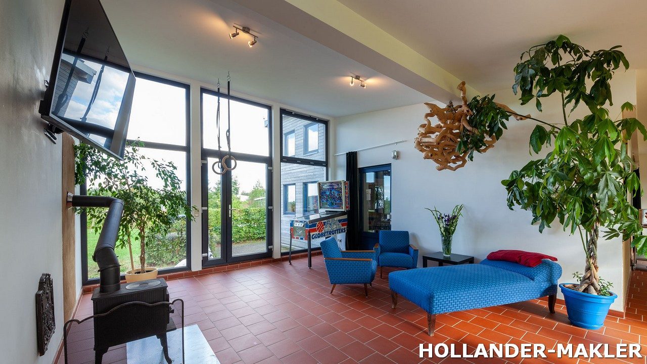 Met woonhuis, werkplaats, energiezuinige vakantiewoning en drie bedrijfs-/garagehallen