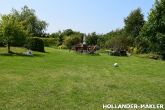 Het volledig omheinde terrein van 6.292 m² heeft een automatische toegangspoort, verharde paden en mooi aangelegde buitenruimtes.