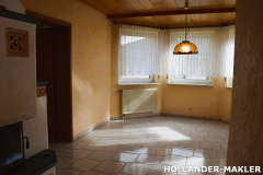 • Woonkamer met ‘Kachelofen’ (houtkachel) en terrasdeur naar het zonneterras