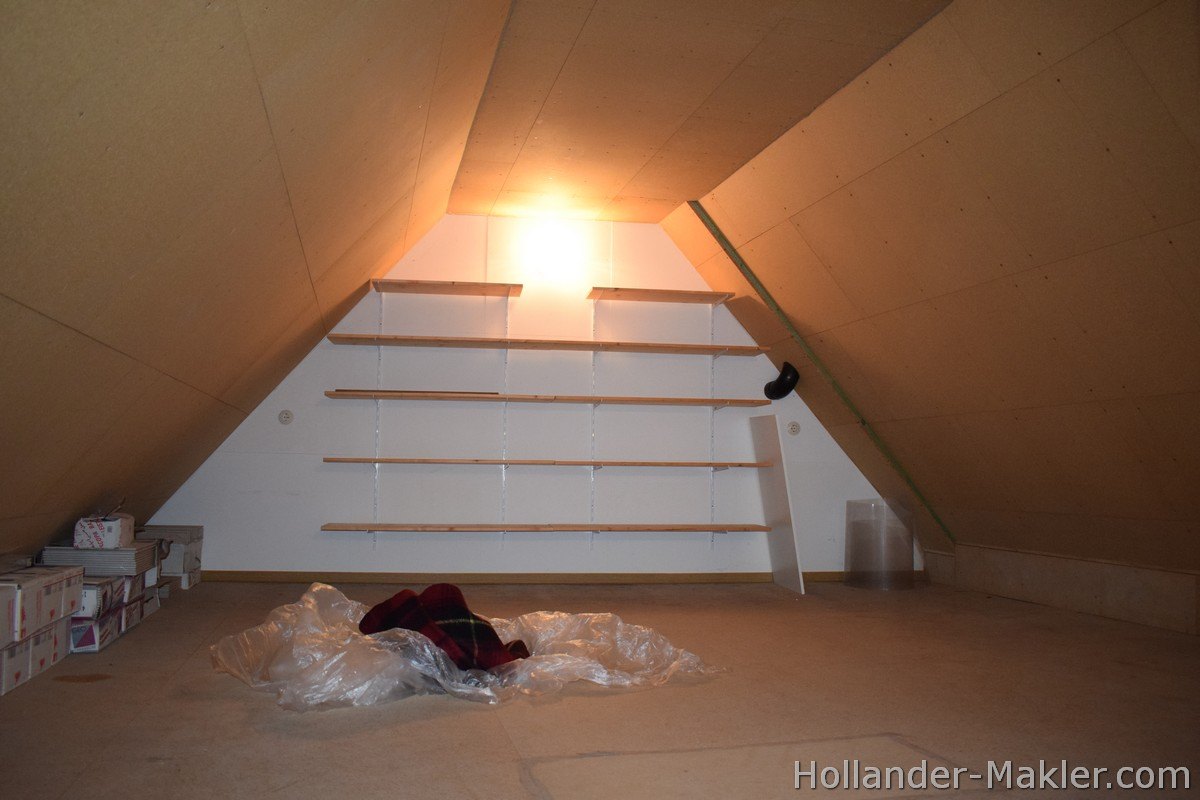 Via een vlizotrap bereikt u de netjes afgewerkte zolderruimte, ideaal als extra opslag of hobbyruimte.