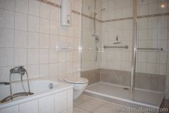 Bereikbaar via een massief beukenhouten trap. Overloop met toegang tot een slaapkamer, een kinderkamer en een ruime badkamer voorzien van ligbad, inloopdouche, toilet en wastafel.
