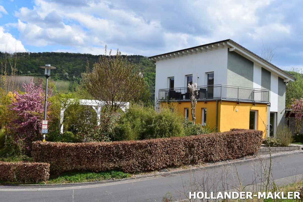 Dit moderne energiezuinige eengezinshuis met vrij uitzicht staat in een rustige nieuwbouwwijk in Briedel aan de Moezel.