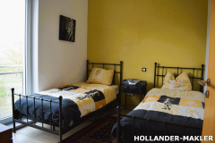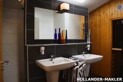 Eerste verdieping: overloop, ruime slaapkamer met deur naar ruim balkon, 2 ruime slaapkamers, badkamer met inloopdouche, hangtoilet, wasmeubel met dubbele spoelbak, opbergmeubel en een 3 à 4 persoons sauna.