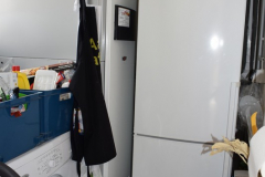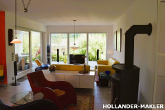 Begane grond: hal, keuken met moderne inbouwkeuken, woon-/eetkamer met houtkachel, trap en grote schuifpui naar overdekt terras en mooie siertuin, gastentoilet, verwarmingsruimte.
