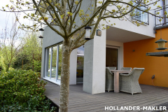 Naast het huis is er een carport, een ruimte voor de afvalbakken en een tuinschuurtje gebouwd. In de tuin is een terras met pergola en pijpassend zonnedoek systeem.