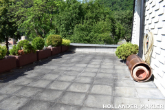 - Keuken met inbouwkeuken – via de deur bereikt u het dakterras met adembenemend uitzicht over de Moezel